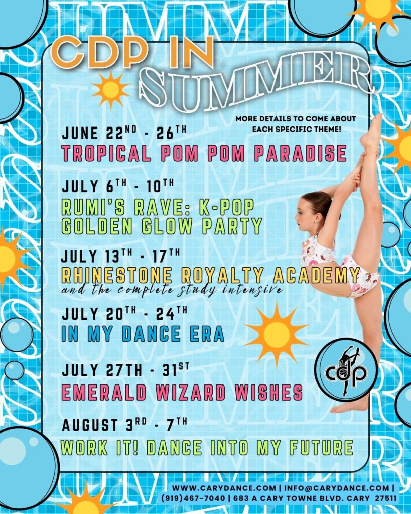 Intermediate-Advanced level dancers (ages 8+) are welcome to enroll in our CDP Summer Intensive July 13th-17th. The intensive runs from 9:30-3:30pm Monday-Friday, with classes in all dance styles and strong focus on growing Jazz and Ballet technique.