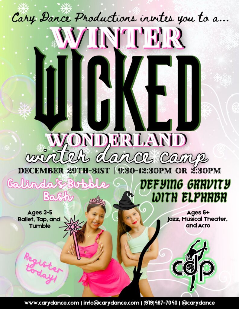 Spring Recital – June 8th, 2025 for 2024-2025 Fall Session Dancers at Raleigh Memorial Auditorium. Stop by the front desk to purchase tickets for this performance. We are so proud of our 2024-2025 season dancers!