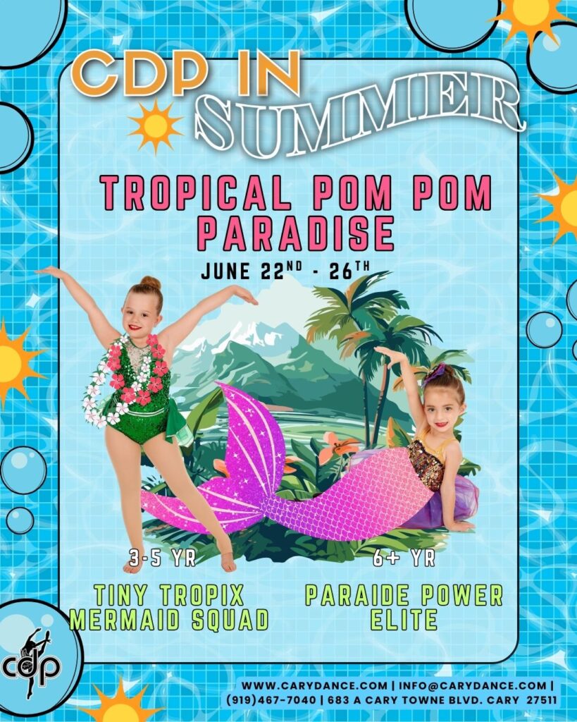 Make this summer the best one yet! Camps run Monday-Friday all summer long. Dancers ages 3-5 are eligible to join camp from 9:30-12:30pm each day. Dancers ages 6 and up have the option to stay until 2:30pm each day. Camps are beginner friendly, but fast-paced enough for all levels to enjoy. Each day will focus on new dance steps, acro skills, crafts, snack breaks, games, and more!
